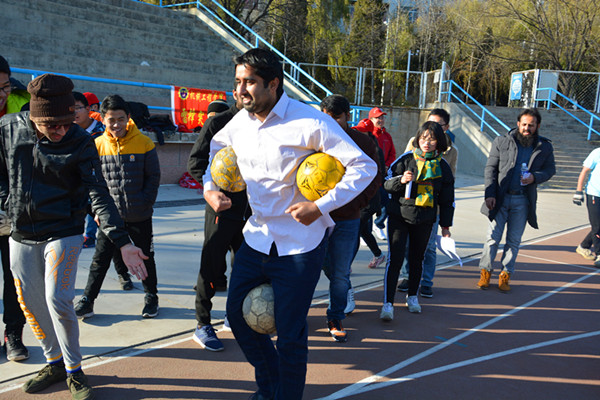 在精彩的开场白之后,游戏正式开始。雷区取水过程中队友们拼命帮助取水者稳住身体,同学们手忙脚乱拼尽全力。运足球过程中,巴基斯坦友人十分给力,不仅能抱着两个球,还能在腿间夹着一个球的情况下跳。无敌风火轮与运乒乓球比赛需要同学们的相互配合,中巴同学之间的语言障碍无法阻挡心灵的相通,比赛十分激烈。中场休息时刻,巴基斯坦友人们带来了热情又不失优雅的民族歌舞,增进了中巴同学们的感情。疯狂的设计中,同学们在地上扭曲着身体试图组成一个个单词,摆出了很多唯美的造型。最后,第一小组不负众望,获得第一名,得到了奖励即8枚胸章。为表达中巴同学间的友好情谊,每个人都获得了一枚中国结,并合影留念。