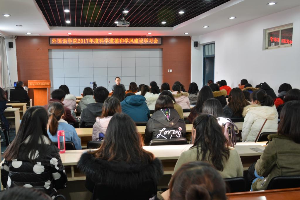 外国语学院召开2017年度科学道德和学风建设宣讲会(姜炼/摄)