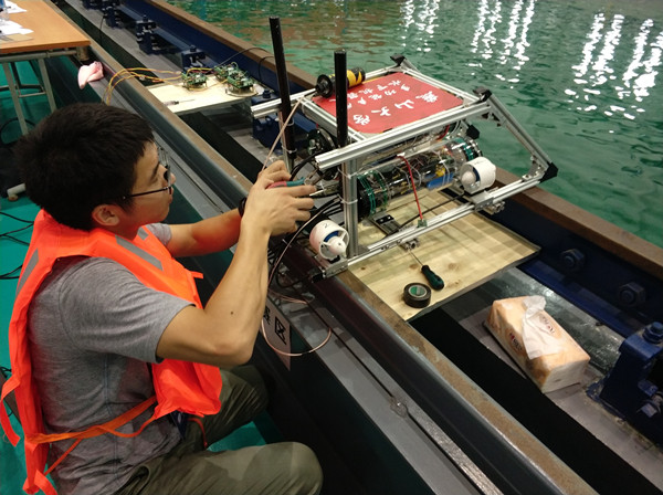 今年的第五届大赛主题为“创新性水下机器人”,重点关注创新,鼓励参赛队伍以合理性及可行性为前提,进行思路创新或原理创新,提出具有创新性的水下机器人设计方案。并首次加入了现场比赛环节,实现了参赛作品从单纯的“设计类”竞赛到“设计制作类”竞赛的转型。来自上海交通大学、中国海洋大学、中国科学院大学、浙江大学、中山大学、哈尔滨工程大学、海军工程大学等24所61支队伍报名参加了本次赛事,共有45支队伍参加了在天津国家海洋技术中心主办的比赛。在比赛过程中,来自北方网、天津广播电视台等媒体记者对“多功能声学水下机器人”研究团队进行了专访,新华网也报道了我校参赛队伍的比赛表现。(编辑/刘蕊)