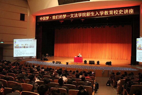 【新闻中心讯】11月4日下午15:30,文法学院2017级本科生在东大活109室认真聆听了由著名科学家、燕山大学机械工程学院教授黄真主讲的“中国梦·我们的梦——文法学院新生入学教育校史讲座”。本次讲座由燕山大学文法学院主办。