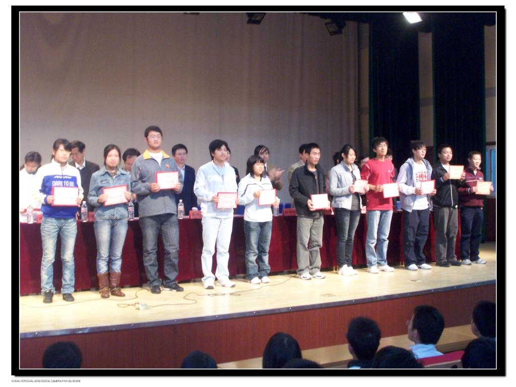 学院领导宣读了表彰文件并为荣获优秀文明班级、优秀学生干部、三好学生、优秀团员、优秀团干部称号的学生代表、英语国家四级考试先进个人及优胜班级颁发了荣誉证书、奖品和奖金。随后,06级学生付世杰和张梦宇分别作为学院三好学生和英语等级考试先进个人代表发表感言,和同学们一起交流了学习生活经验。最后,学院党委书记王丽萍讲话,她首先向所有受到表彰的同学和集体表示热烈的祝贺,鼓励同学们再接再厉,戒骄戒躁,并号召全体同学向获奖同学学习,确立更高的目标和树立更加远大的理想,积极努力,奋发向上,努力提高自身的综合素质,在今后的学习中争取更好的成绩。