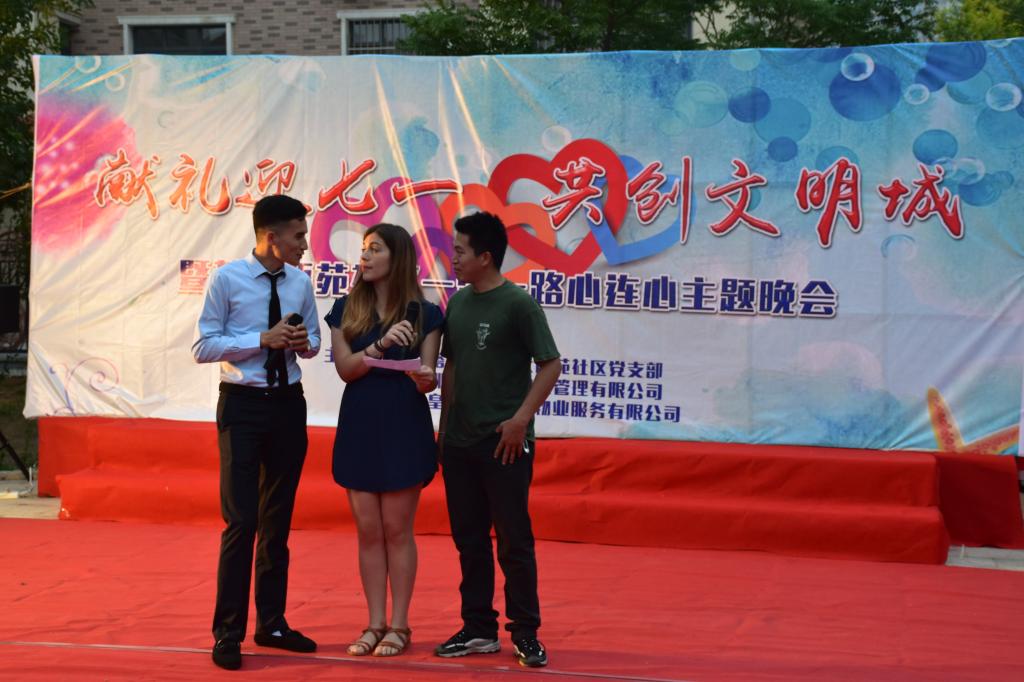 【新闻中心讯】6月30日晚7点,国际教育学院留学生在学生科科长葛玮老师和辅导员武利敏老师的带领下前往燕大西苑社区,携手社区举办了“献礼迎七一,共创文明城”暨第一届 “一带一路”心连心主题晚会。