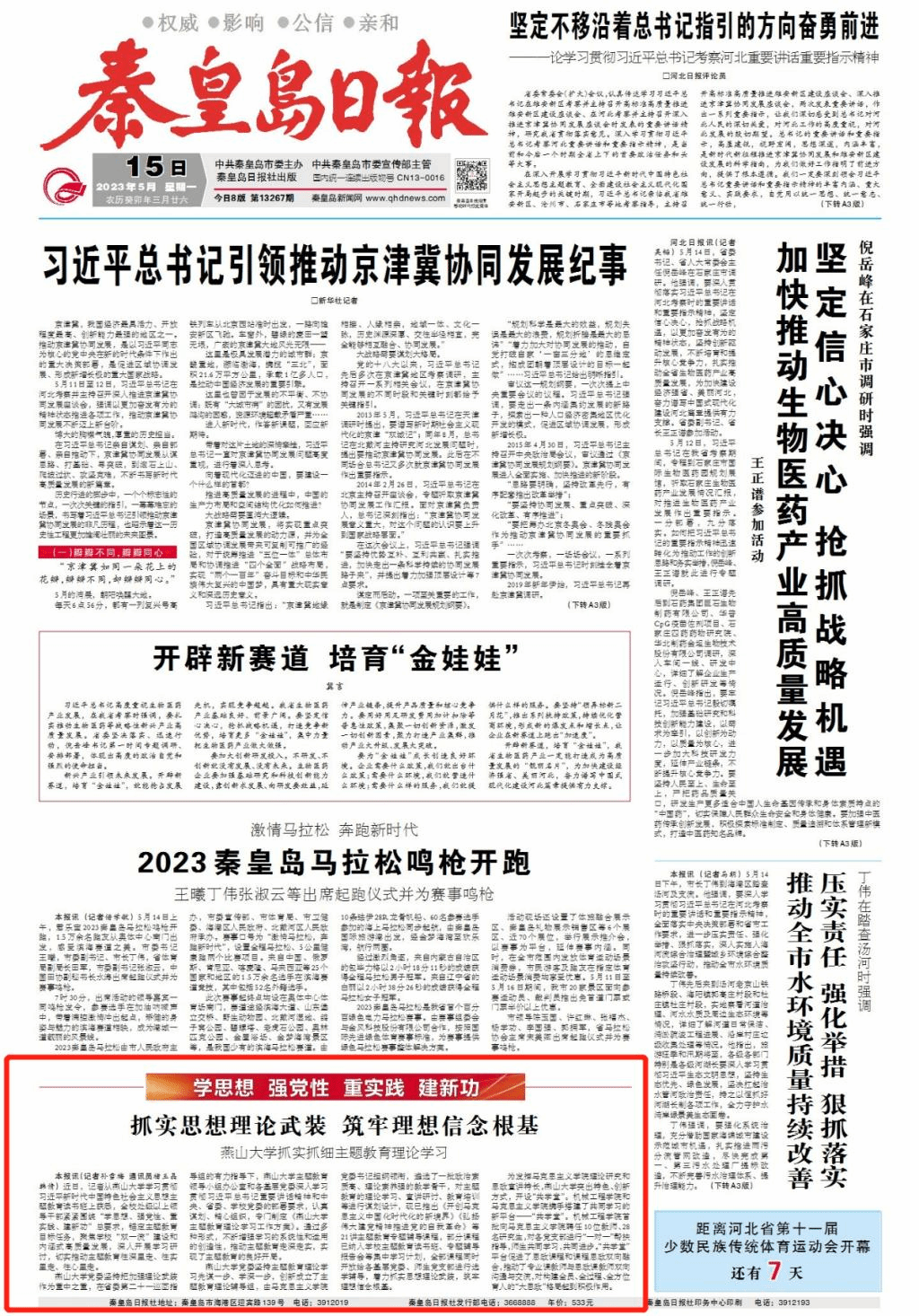 【秦皇岛日报】抓实思想理论武装 筑牢理想信念根基 燕山大学抓实抓细主题教育理论学习