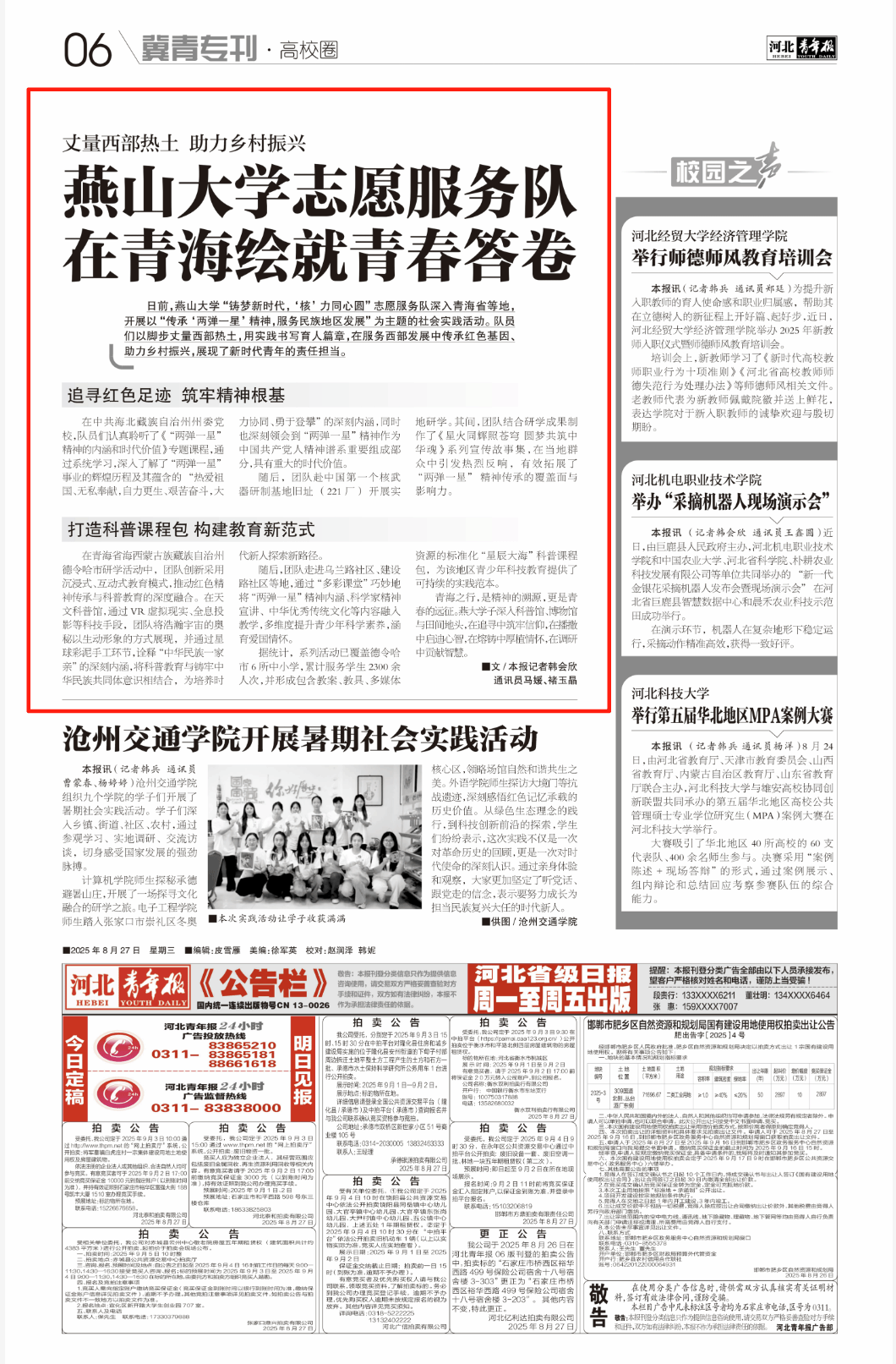 【河北青年报】燕山大学志愿服务队在青海绘就青春答卷