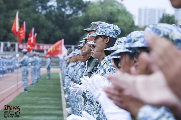 当观众也要认真而整齐,把军训精神坚持到最后(张羽)