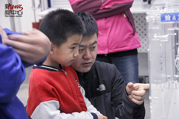 小朋友对典型气动回路演示装置很感兴趣(董成彪)