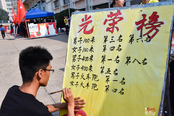 实时记录赛场上的情况,将累累胜绩分享给场外的同学(郭子琪)