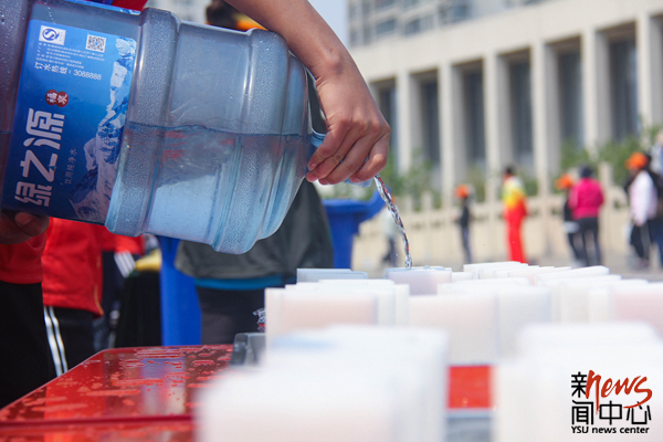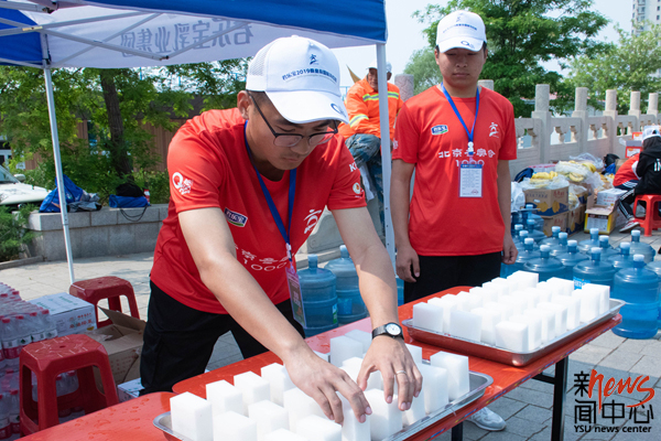 整齐码放好给参赛者们准备的“降温神器”。(贾孟玮)