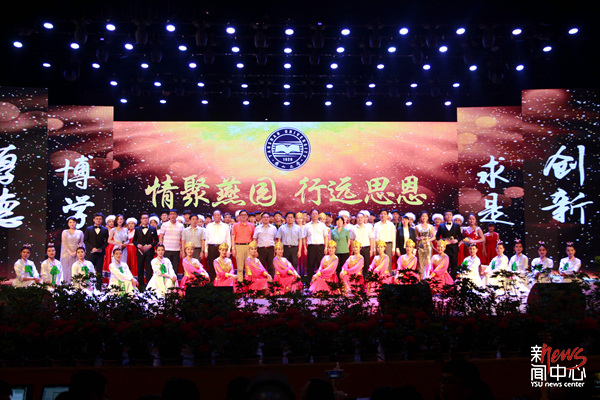 校领导与晚会演职人员合影留念(杨林阚雪摄)