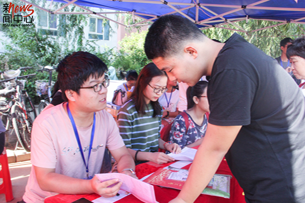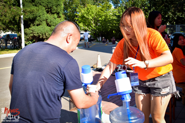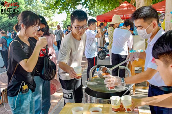 报到忙碌之余,停下脚步感受一下燕大贴心的服务吧,解暑绿豆汤来一杯(张博)