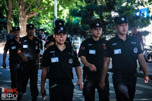 为新生维持秩序的保安们也很帅气呦!多亏了他们,迎新期间的校园依旧秩序井然(史陈雅)