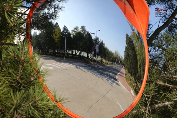 新修的斑马线在交通广角镜中看起来美美哒(胡晨凯)