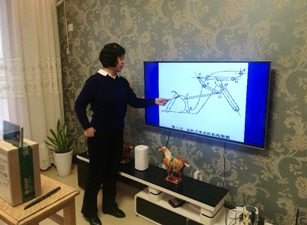 客厅成教室,电视做白板,纸箱为支架。