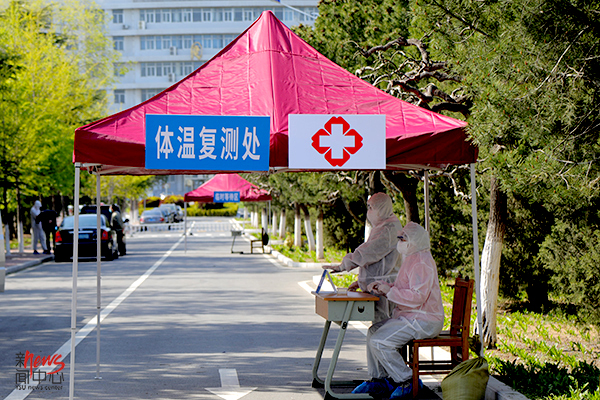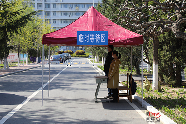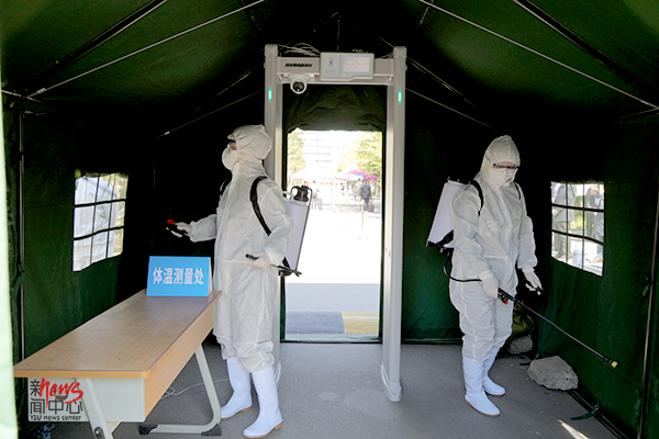 在测温过程中发现体温异常学生,工作人员立即报告后勤服务中心,医护人员对体温异常学生进行复测。复测体温异常,防控隔离组对学生进行流行病学调查,并做登记。登记完成后,防控隔离组安排专车专人将学生送往定点医院。