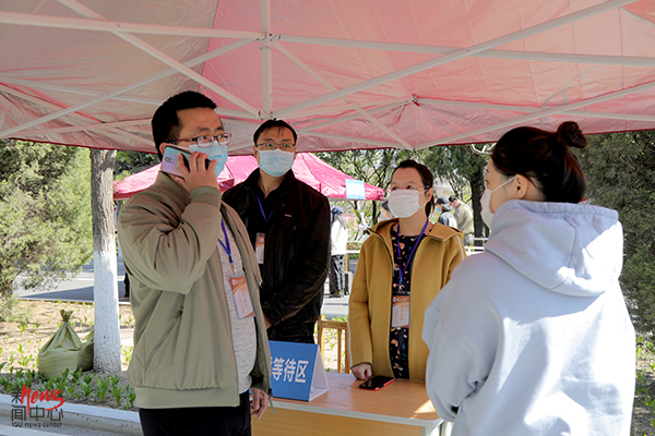 校门外,一名“学生”反映自己的校园一卡通在路途中丢失。现场工作人员联系其辅导员到现场对学生身份进行核实,核实无误后再完成入校手续。