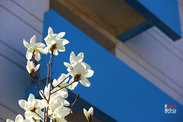 玉兰绽放的枝头
