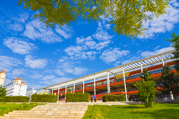 青空下的西区教学楼巍然矗立