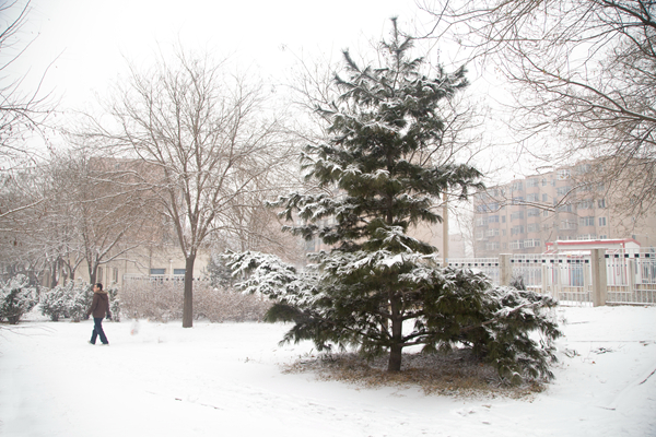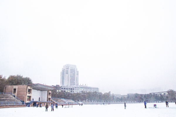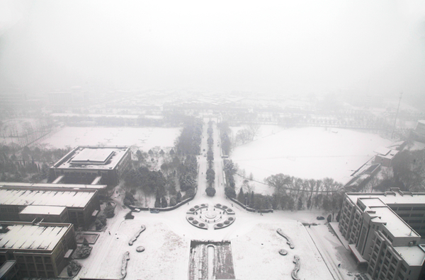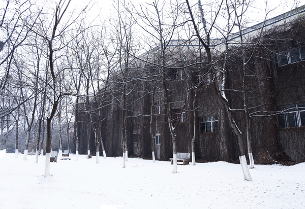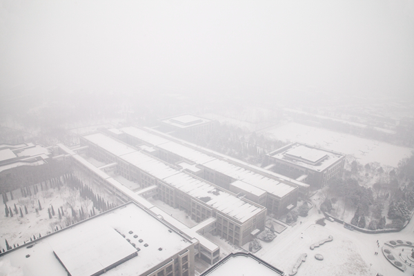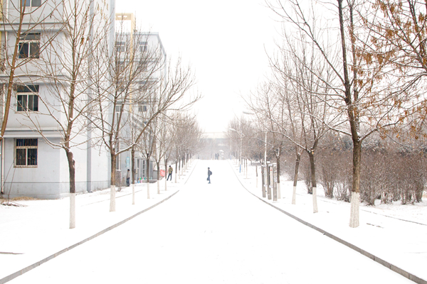 皑皑白雪,漫天洒落,为教学楼披上白色的外衣