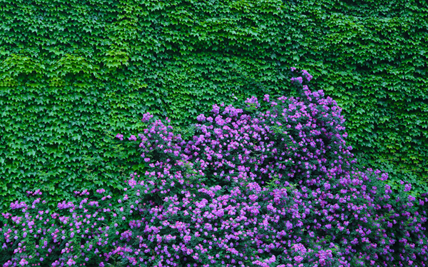 绚烂的夏花给爬山虎换上了新的衣裙