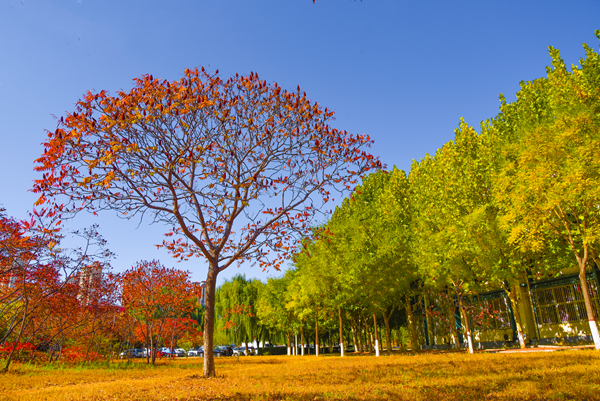 所有的楼宇都为秋天的到来争相换了装束
