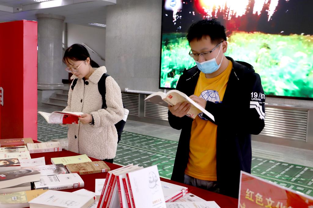 燕园花开,最宜读书。4月23日,燕山大学图书馆一楼大厅红色文化展示区人头攒动,燕大师生在这里翻阅红色经典,观看电子画屏动态展示的党史故事图画,接力抄录下感动过、启迪过无数人的红色经典文字。