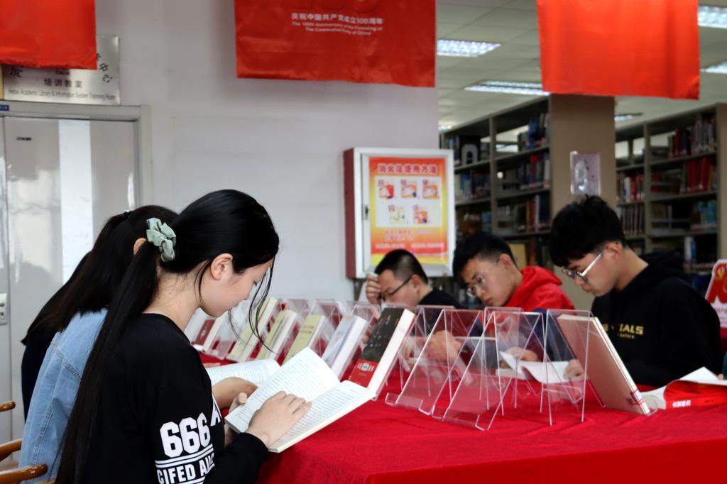 在中国共产党100周年之际,燕山大学图书馆精选馆藏500多本党史图书,开辟专门的党史阅读空间,设置红色主题书架、电子阅读机、电子画屏等设备全方位地展现中国共产党历经革命战争的严峻考验、发展道路的艰辛探索、改革开放的创新实践,最终带领中华民族实现综合实力跻身世界前列的奋斗历程。