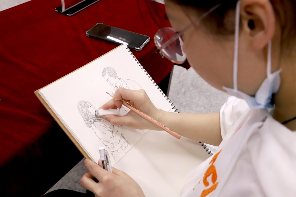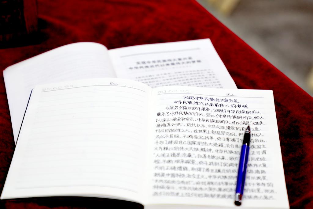 “还是第一次和大家彼此接力共同完成一本书,我觉得特别有意义。用抄书这种简单古老的方式从我们的党的百年历程中汲取精神力量,传抄经典、传承红色基因,让人印象深刻。”艺术与设计学院的张静丹边在本子上画着插图边说。