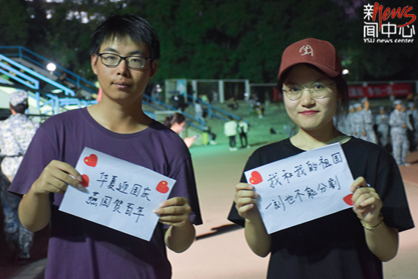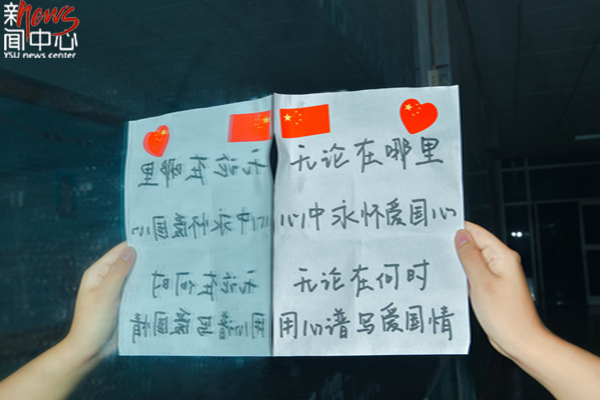 从“河山只在我梦萦,祖国已多年未亲近,可是不管怎样也改变不了我的中国心”到“我和我的祖国,一刻也不能分割,不论我走到哪里,都流出一首赞歌”,从“五星红旗,你是我的骄傲;五星红旗,我为你自豪”到“我爱你中国,亲爱的母亲”……无数华夏儿女用自己的方式向祖国表白。言辞质朴,其情却真。燕大人也不示弱,千言万语,都融在字里行间了。