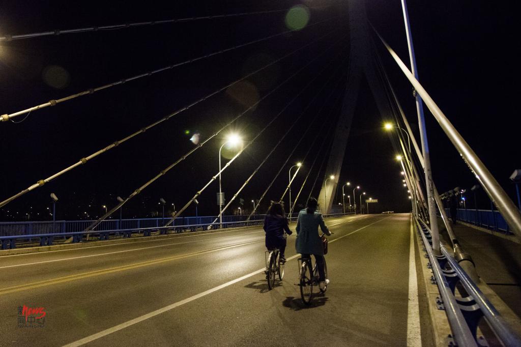 结束了一天的学习,和室友愉快地骑车奔向宿舍 (王三众 摄)