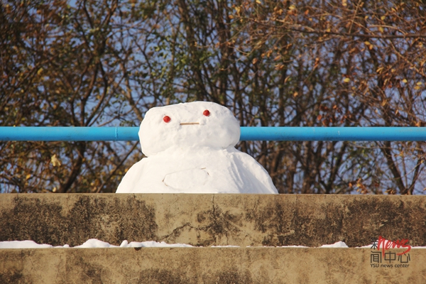 操场边堆起了可爱的大白雪人(周煜/摄)