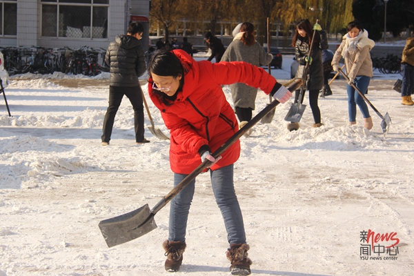 师生们加入扫雪的行列(周煜/摄)