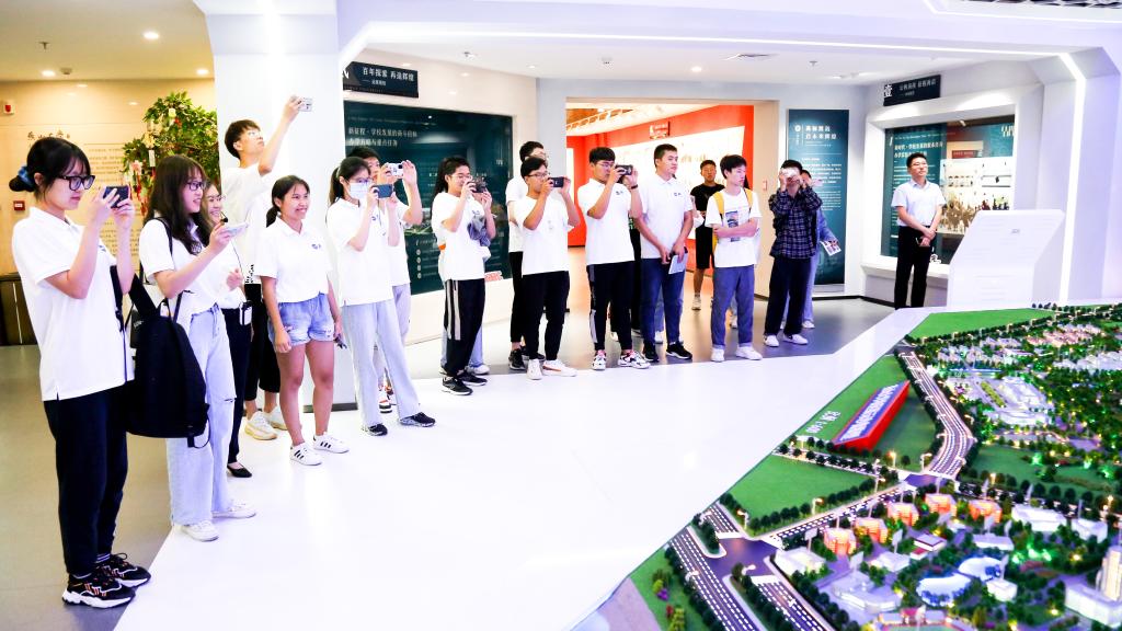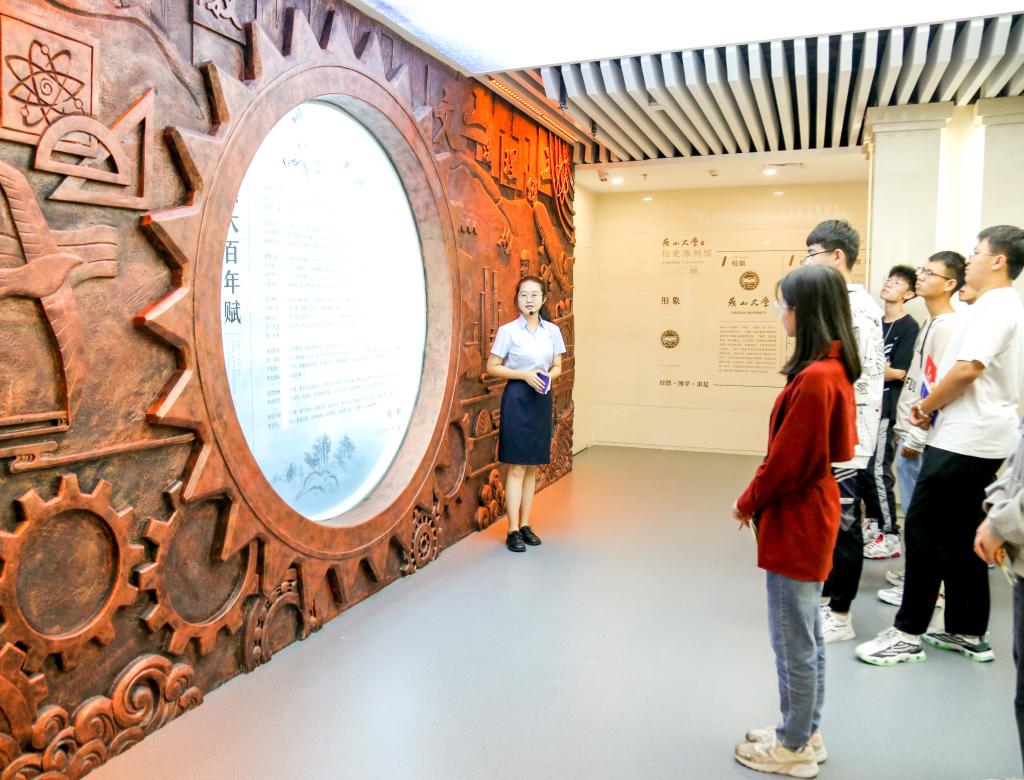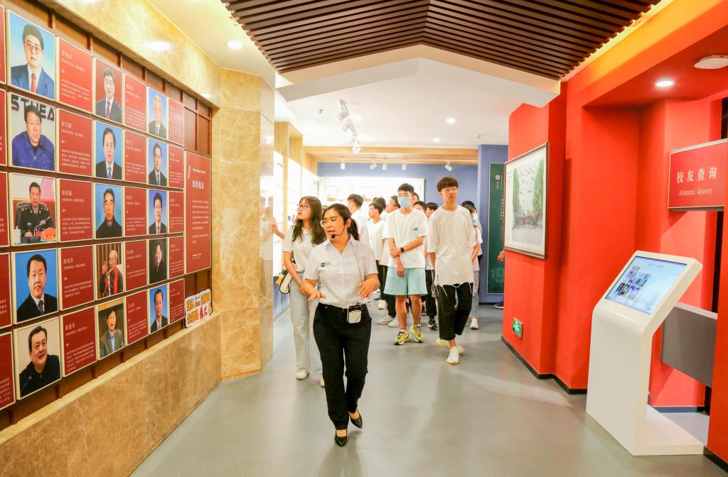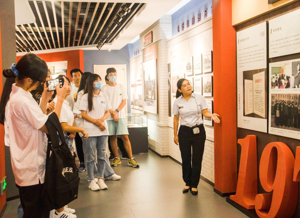 2021级新生在校史陈列馆里进行校史教育“开学第一课”(伊春光摄)