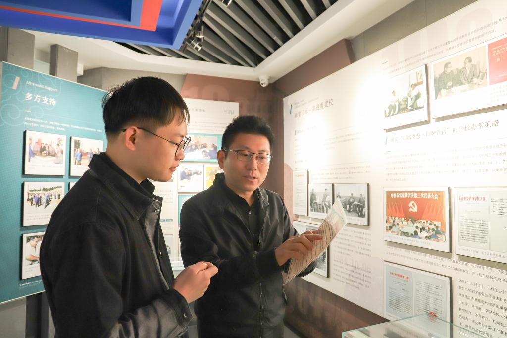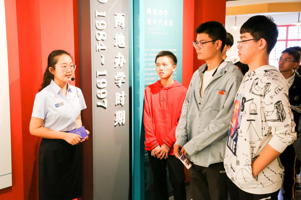 耐心听校史陈列馆的老师们讲述校史的故事(卜腾跃摄)