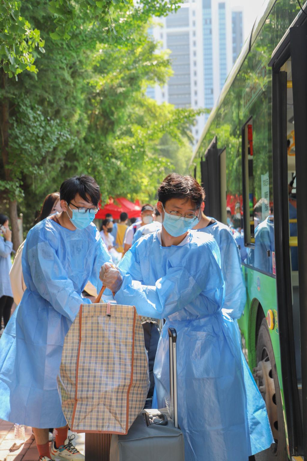 从核验健康宝,到严格遵循流线、有秩序地做核酸;从登记在册,到提着行李前往宿舍,新生入校步步严谨完备。各个站点满是师生志愿者忙碌的身影,他们步履匆匆穿梭其间,热情周到,有条不紊地进行着迎新工作。