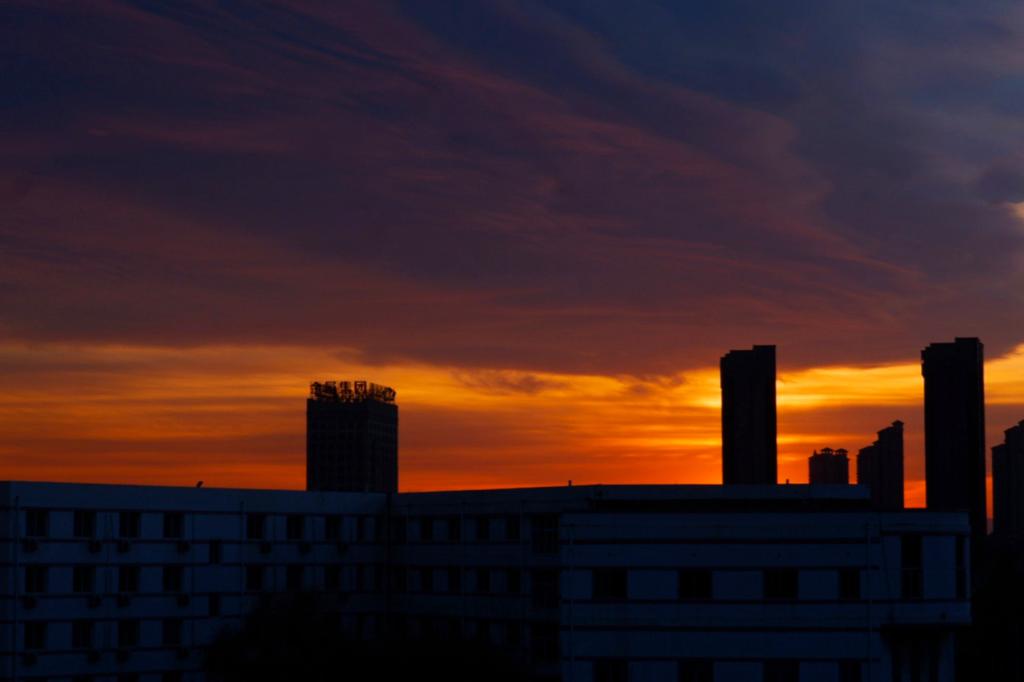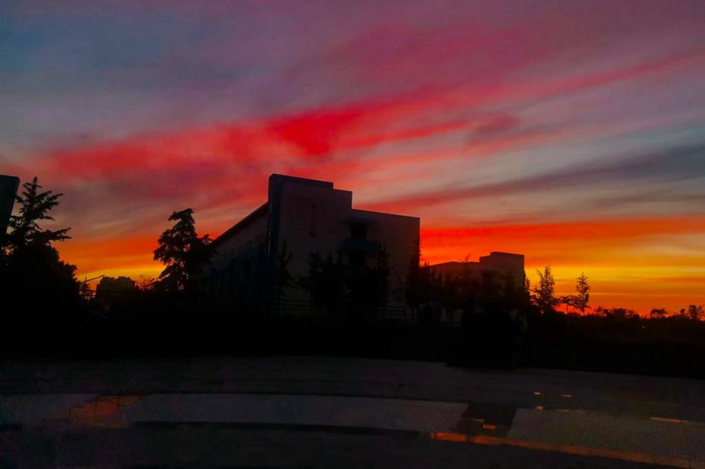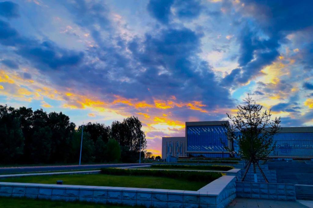 落日之后,驻足凝望着燕园的天空上冷色与暖色碰撞出的美好