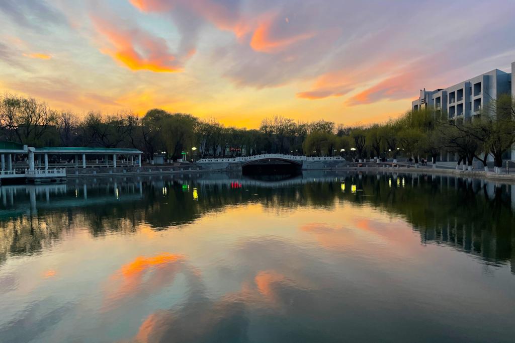 云朵是天空最美的画。每一朵云都是宇宙给予人间的惊喜。它们或粉、或橙、或蓝、或紫……在不经意间打翻了颜料罐,层层晕染着天空的那片蓝。从朝霞四起到日落西山,燕园满目皆浪漫。