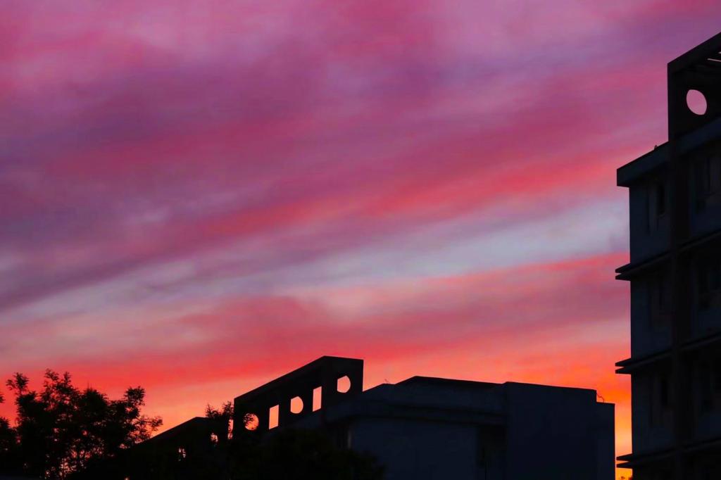云霞渐变,层层晕染,仿佛少女羞红的脸