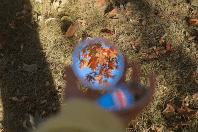澄澈的瞳孔中映出另一抹澄澈的秋景。