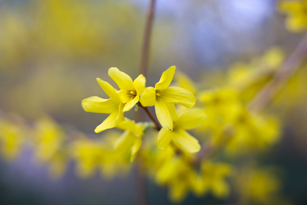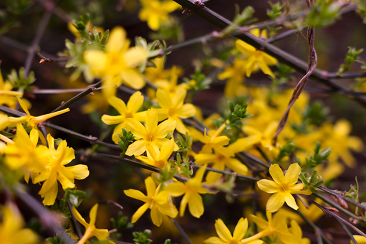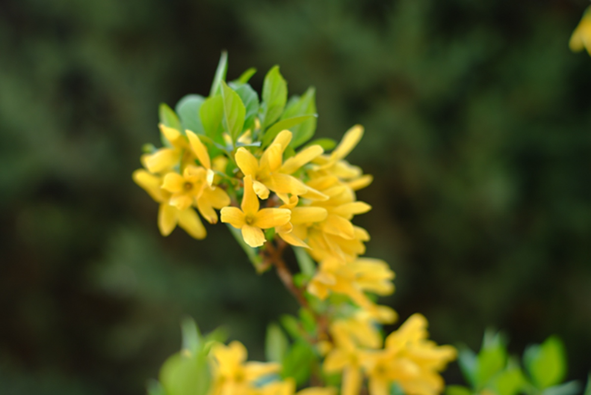 连翘,木樨科连翘属灌木,枝开展或下垂,棕色或淡黄褐色;叶通常为单叶,叶片呈卵形或椭圆形,先端锐尖,叶缘上面呈深绿色,下面为淡黄绿色;花通常单生或2至数朵着生于叶腋,花萼绿色,裂片呈长圆形;果呈卵球形或长椭圆形。