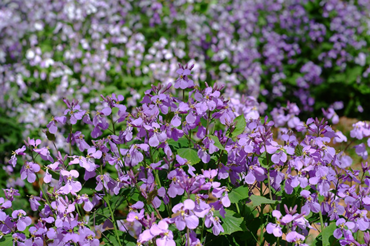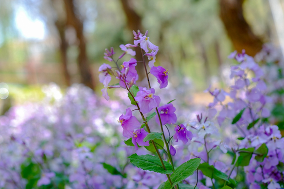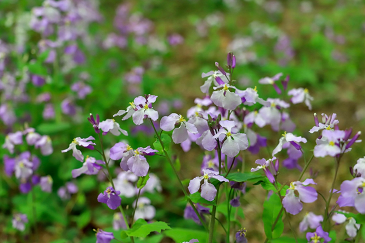 紫金草,又名二月蓝、二月兰、诸葛菜。总状花序顶生,花瓣中有幼细的脉纹,色蓝紫,随着花期的延续,花色逐渐转淡,最终变为白色。