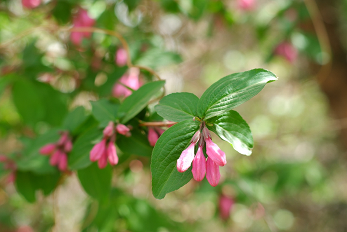 锦带花灌木,枝条开展,树型较圆筒状,有些树枝会弯曲到地面,叶椭圆形或卵状椭圆形,端锐尖,基部圆形至楔形,缘有锯齿,表面脉上有毛,背面尤密。花冠漏斗状钟形,玫瑰红色,裂片5。