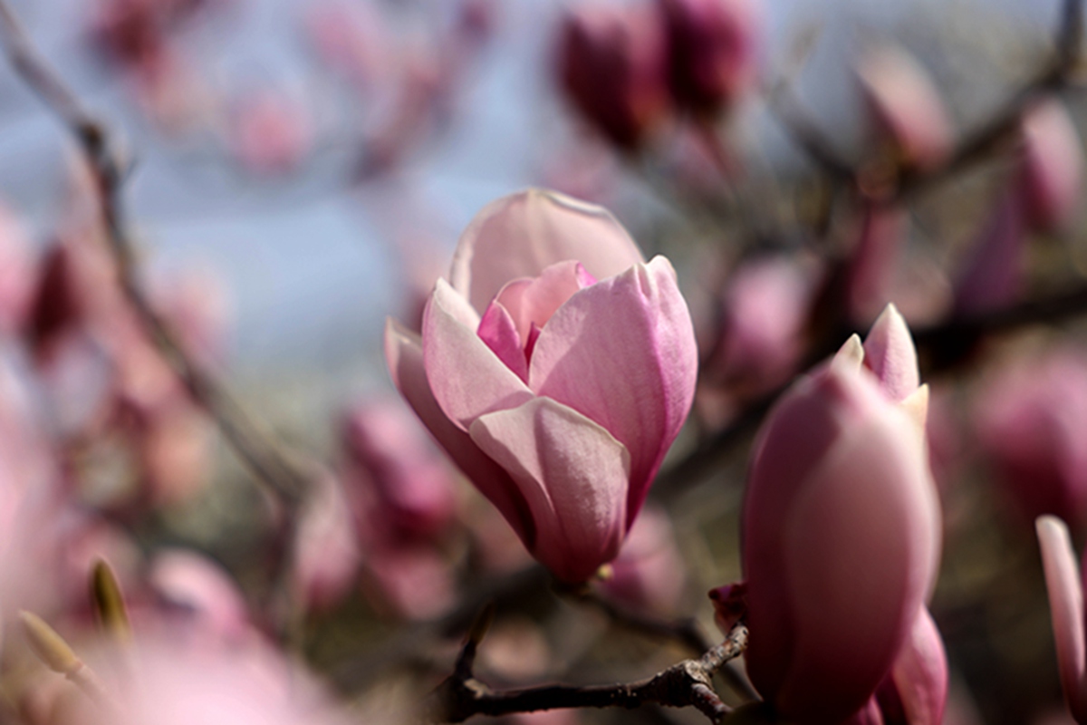 玉兰花外形极像莲花,盛开时,花瓣展向四方,使校园青白片片,白光耀眼,具有很高的观赏价值,为美化校园之理想花型。枝广展形成宽阔的树冠。树皮深灰色,粗糙开裂。小枝稍粗壮,灰褐色。冬芽及花梗密被淡灰黄色长绢毛。叶纸质,倒卵形、宽倒卵形或、倒卵状椭圆形,基部徒长枝叶椭圆形。