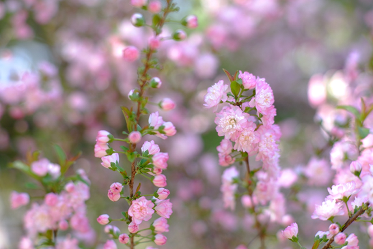 桃花最好辨认的特征是叶子:桃树先叶后花,且叶子细长,而樱花、海棠花、梨花等等大多是椭圆、卵形等比较宽的形状。桃花一般呈粉色,因此古代赞美女子会说“面若桃花”,由此可记住桃花是像腮红一样白里透红的粉色,而非纯白色。