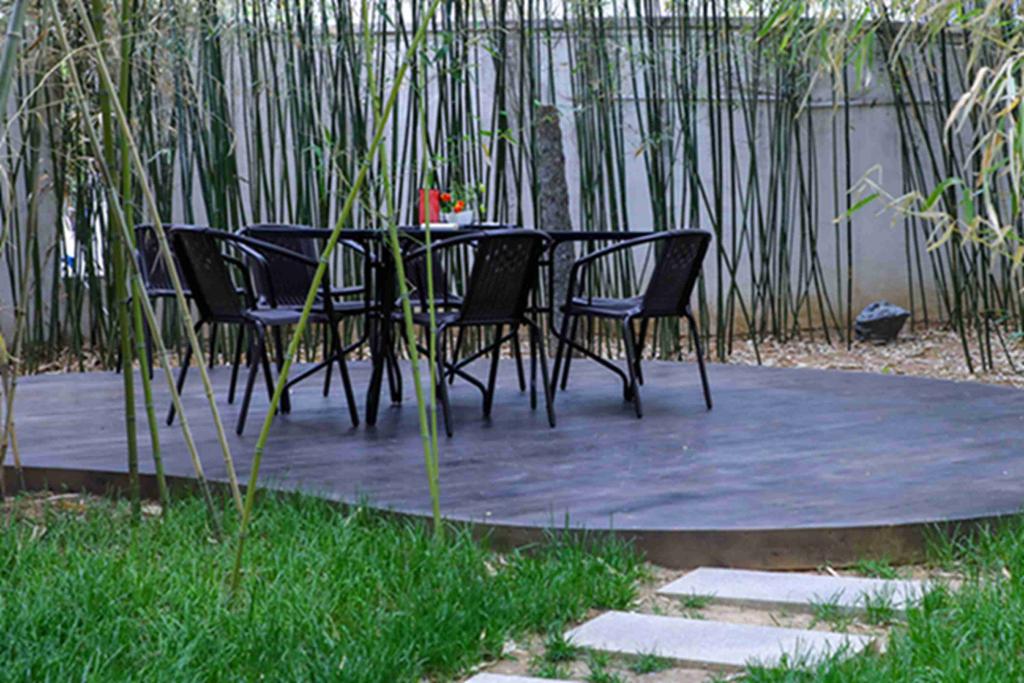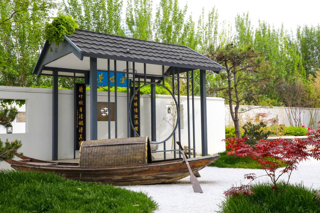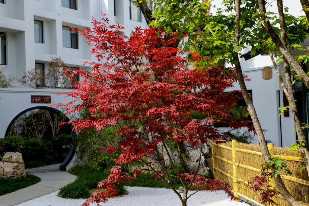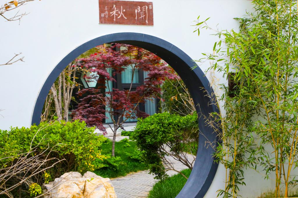 闲庭的美,不是一座孤立的建筑物的美,不是一片孤立的风景的美,而是一份寻觅的美。未近园林先有情,满园国风,满眼竹色,竹栏围舍,白沙点缀,让人感受远离喧嚣的僻静清幽,仿佛在找一位故人,寻一场旧梦。