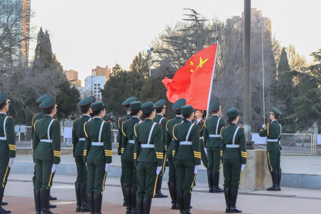 清晨里,夜幕中,托起轻轻的旗帜,担起重重的责任,国护队以青春之姿护卫国旗,热血身躯激昂青春。台上一分钟,台下十年功,他们用勤劳和汗水换来了一刻的让他人赞叹敬佩的时光。迎着光,感受着拂面微风,在红旗下,在春风里,他们眼里有光,在一次次庄严肃穆的升旗仪式中书写着自己的诗篇。