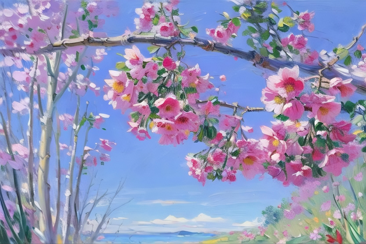 嫣粉点染枝头恣意绽放酝酿,