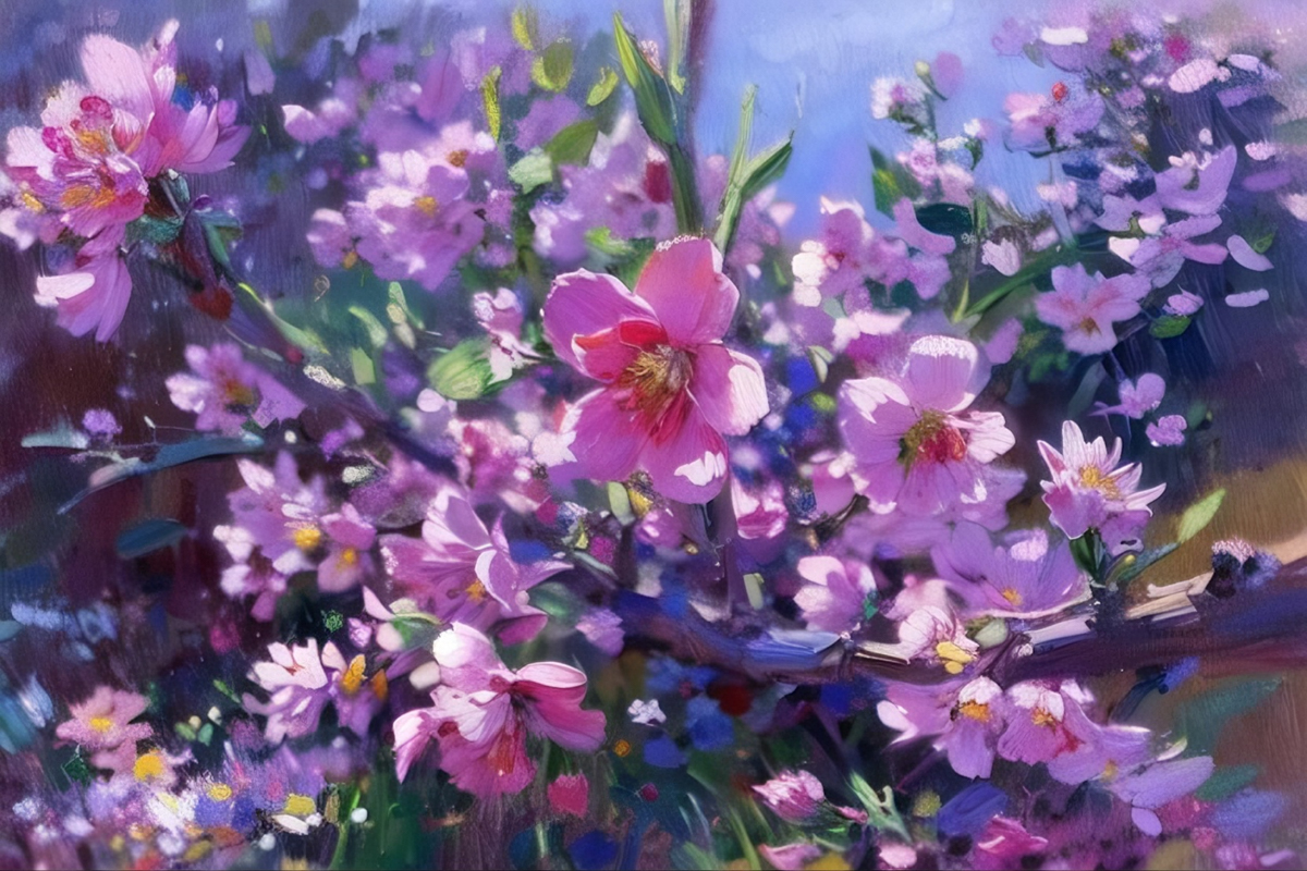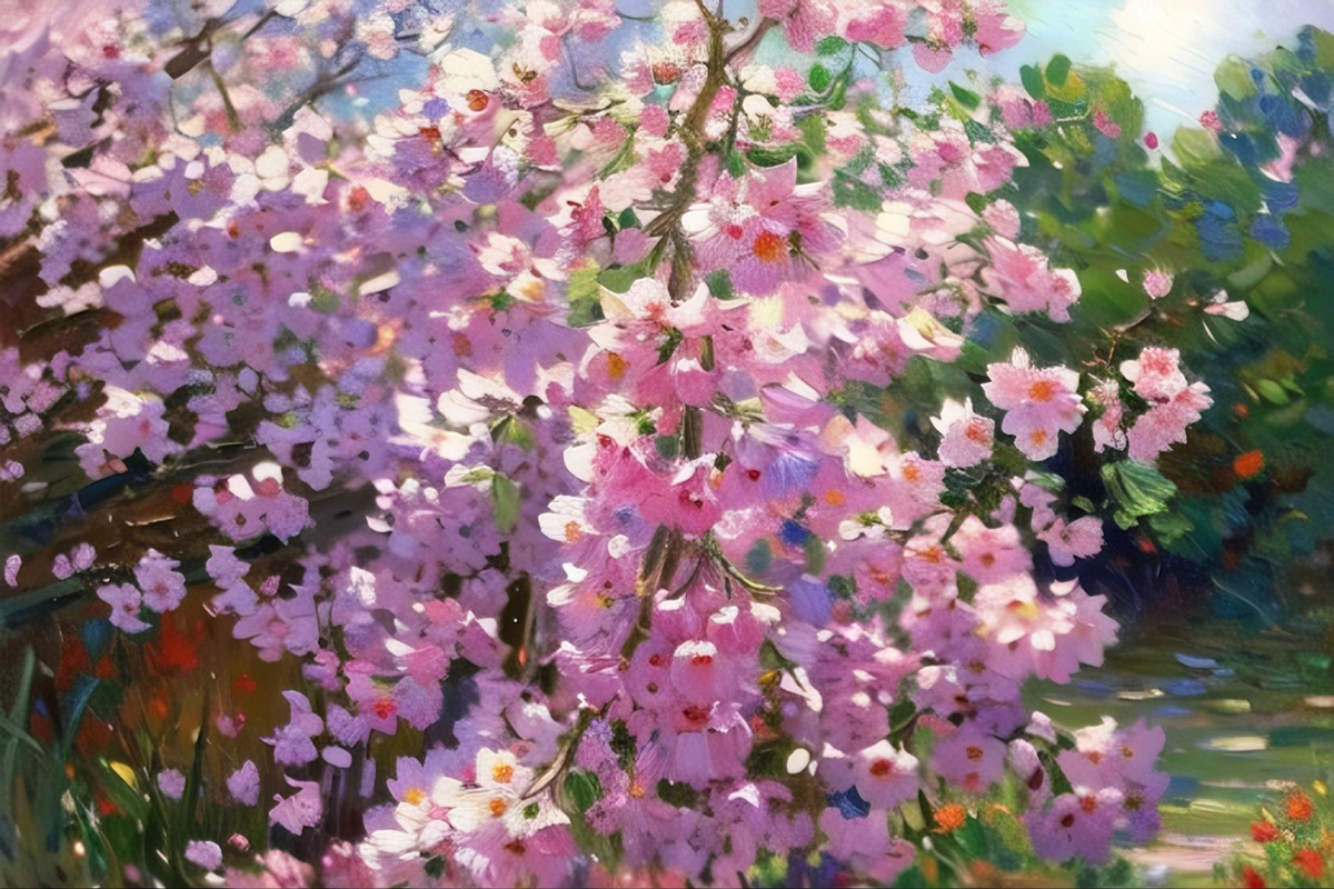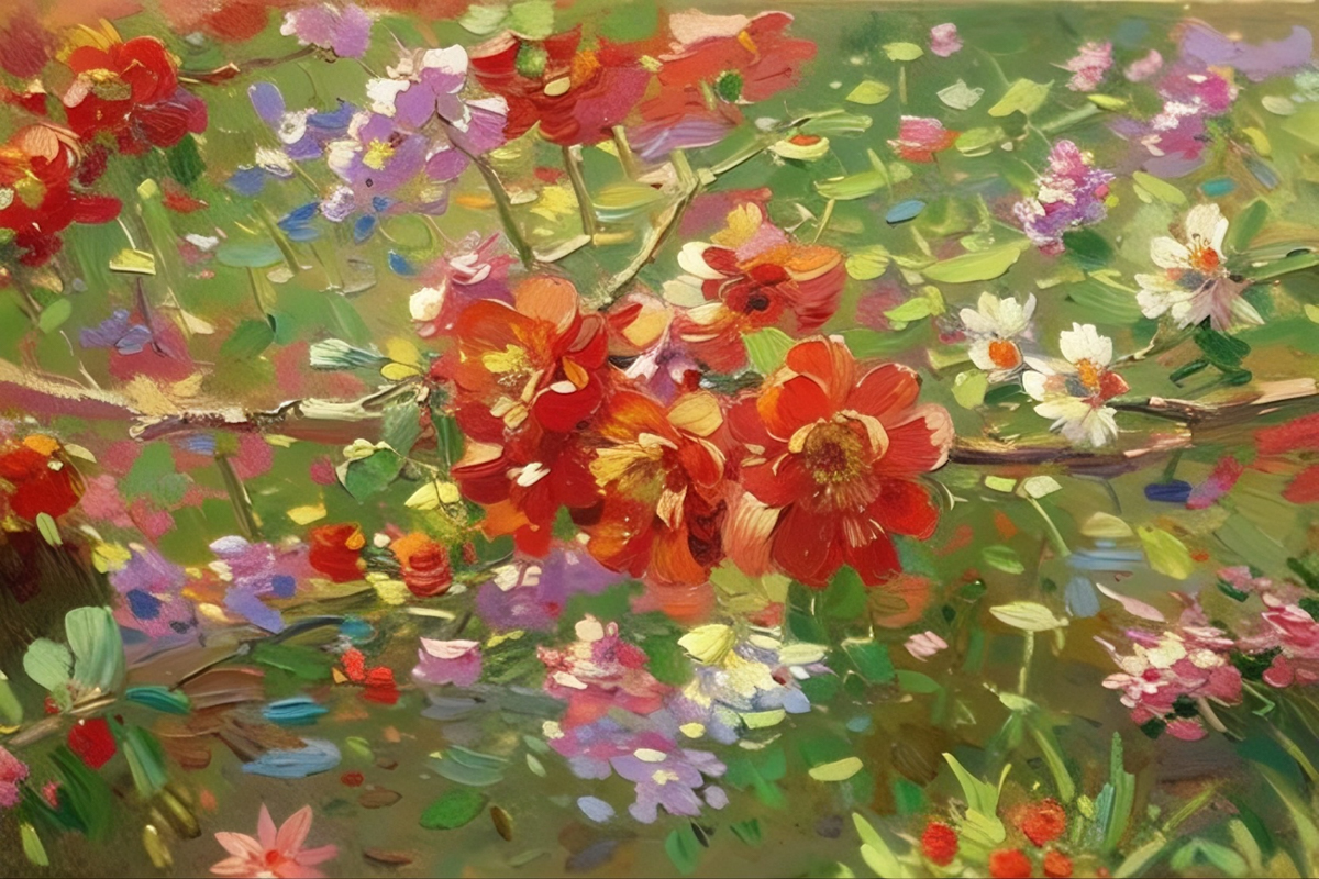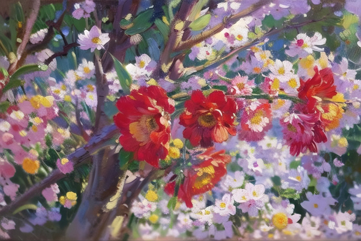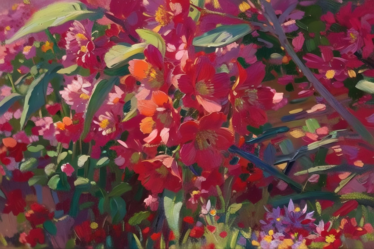 风传花信,锦绣争妍,将满园繁花尽数融进瑰丽的笔墨