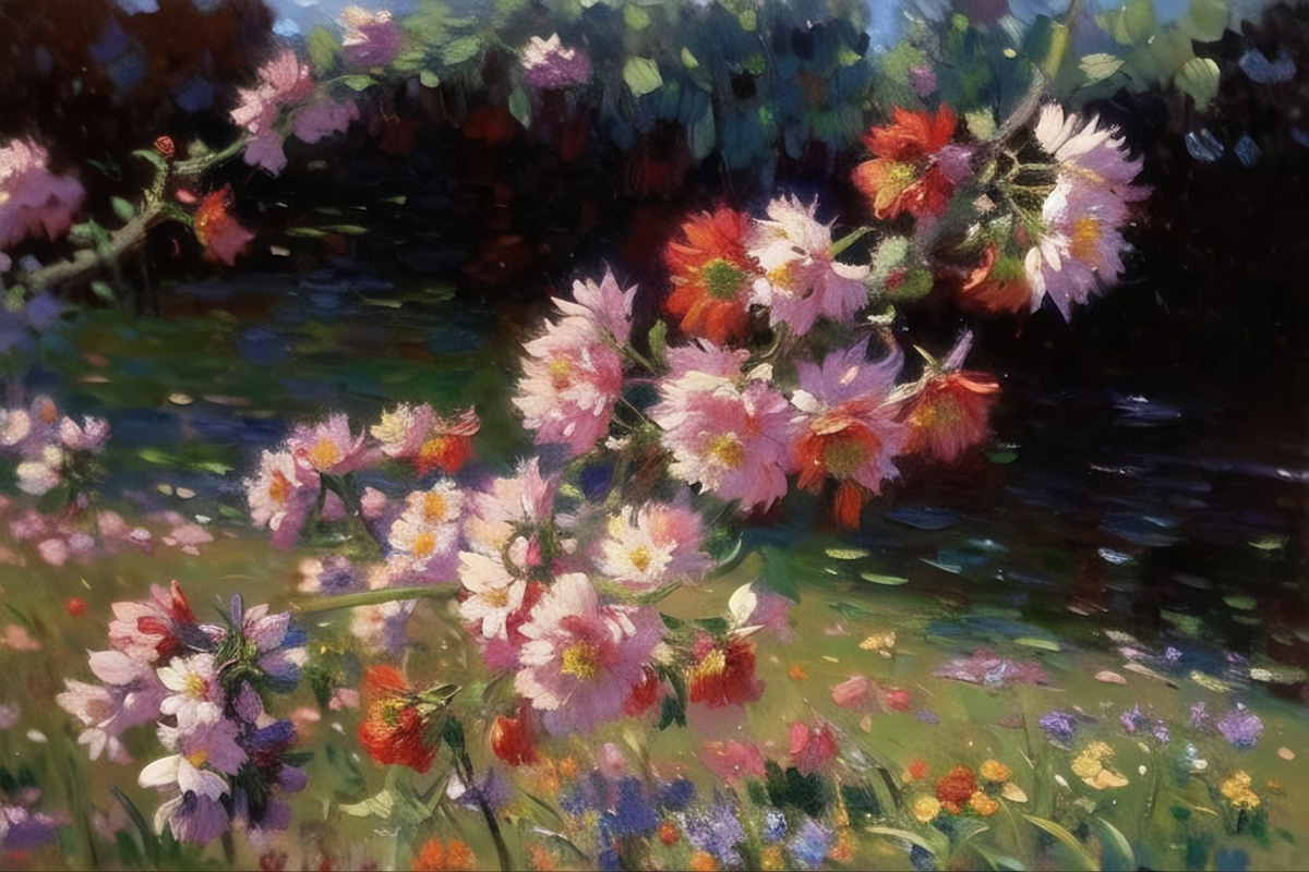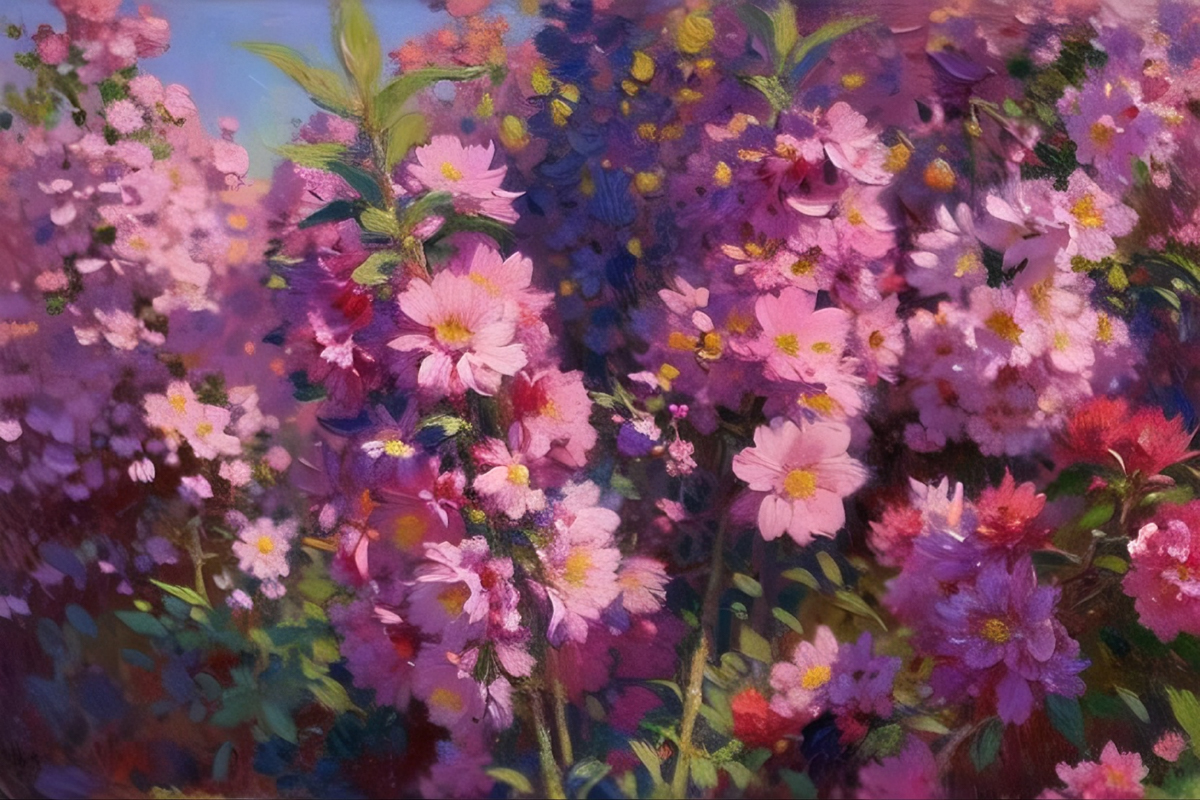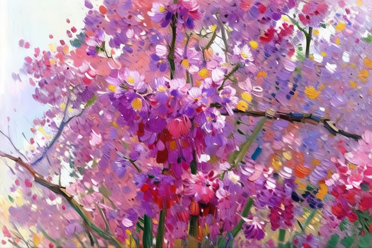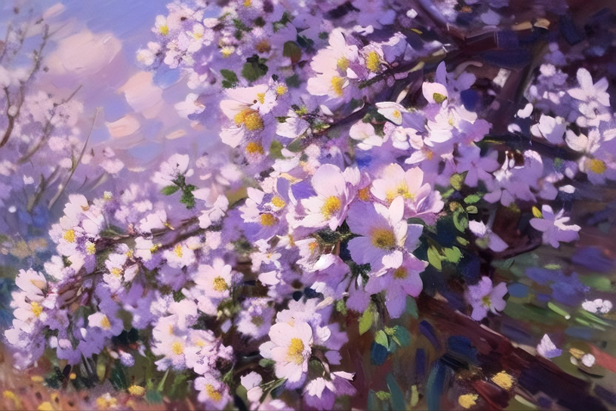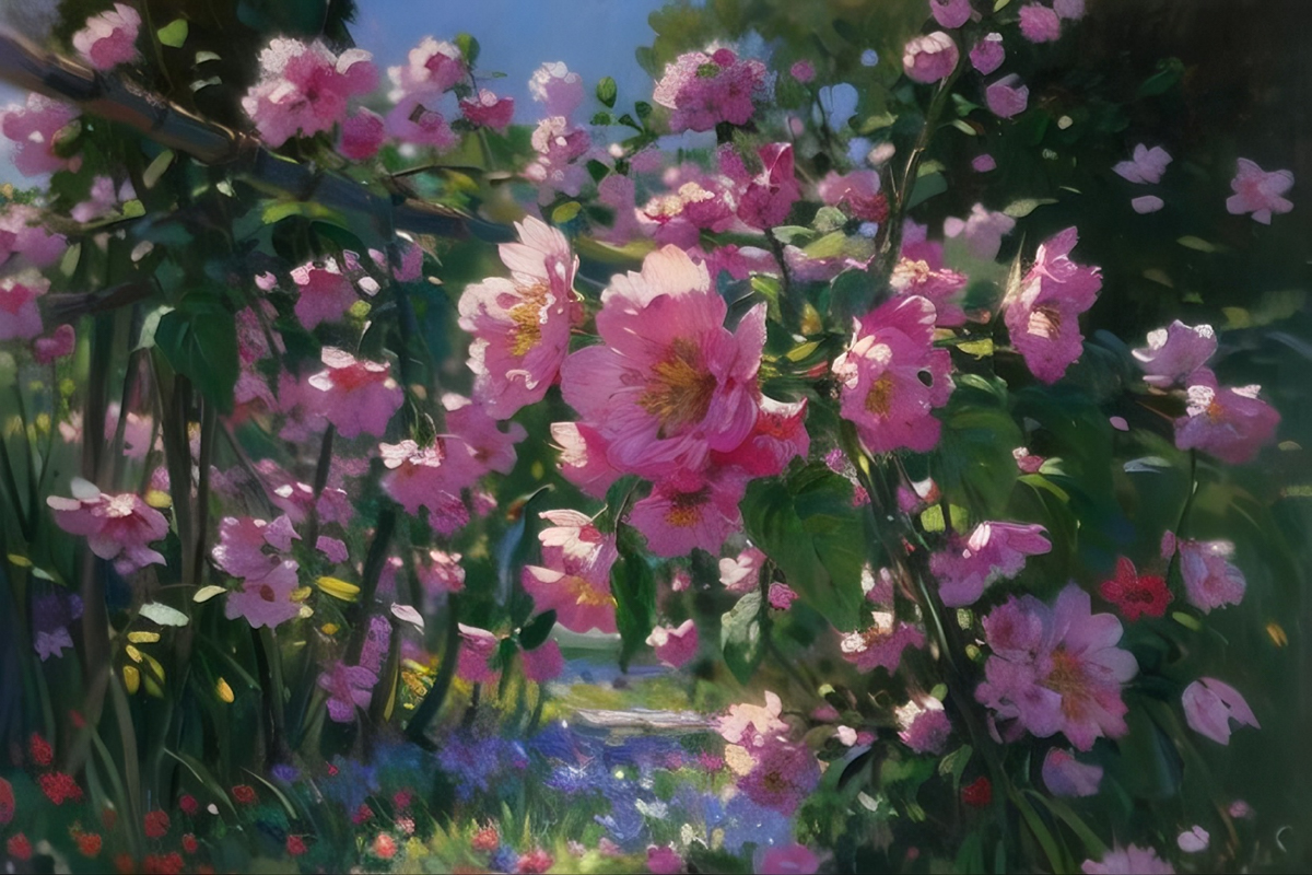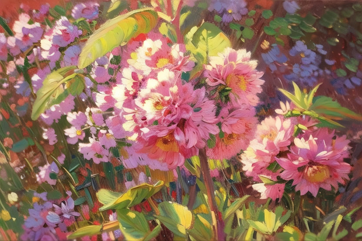 风传花信,锦绣争妍,将满园繁花尽数融进瑰丽的笔墨