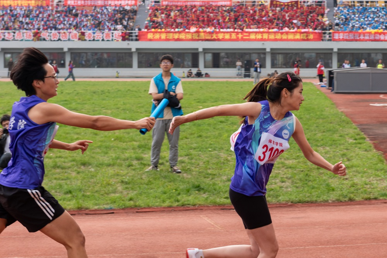 接力棒的传递,是速度的激情,是信任的交接,是默契的展现,是团队精神的飞扬。
