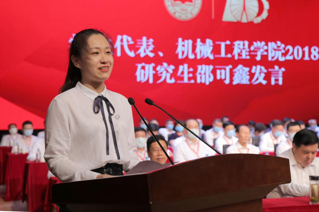 邵可鑫代表年轻一代燕大人,向母校送上生日祝福。她说,燕山大学让我们每位学子心中有火、眼里有光、脚下有方向!前辈们历经风雨,用实际行动擦亮了燕大名片,身处新时代的我们,更要继承和发扬百年燕大精神,坚定信念、奋进担当,为实现中华民族伟大复兴的中国梦贡献新的燕大力量!